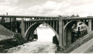 Rooted in archival photographs drawn from the Spokane Public Library’s Inland Northwest Special Collections, the work incorporates historic photographs of Spokane’s bridges and other local imagery as its foundation. These archival materials do more than document the past. They hold traces of the city’s memory — its structures, its crossings, its landscapes, and the layered histories that continue to shape how we move through this place today.